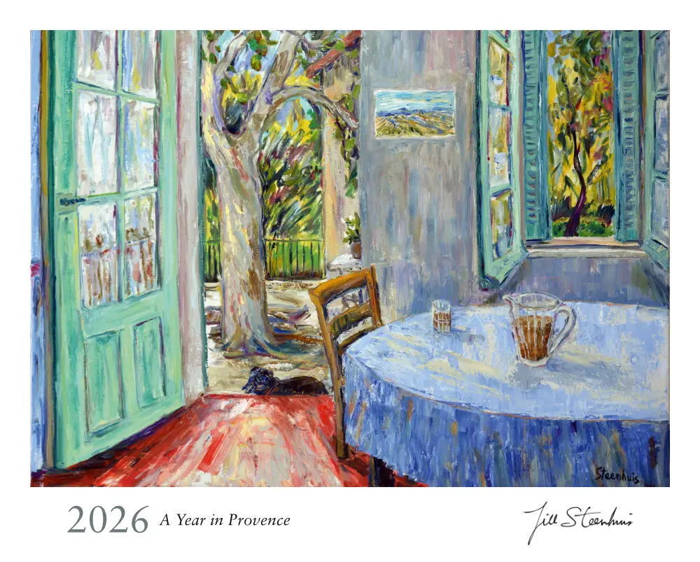 Voilà, the 2026 calendar is now available! A spiral-bound hanging calendar (18” x 11”) including 14 images of selected work from this current year. Experience a journey through the seasons and landscapes of Provence at the turn of each page.