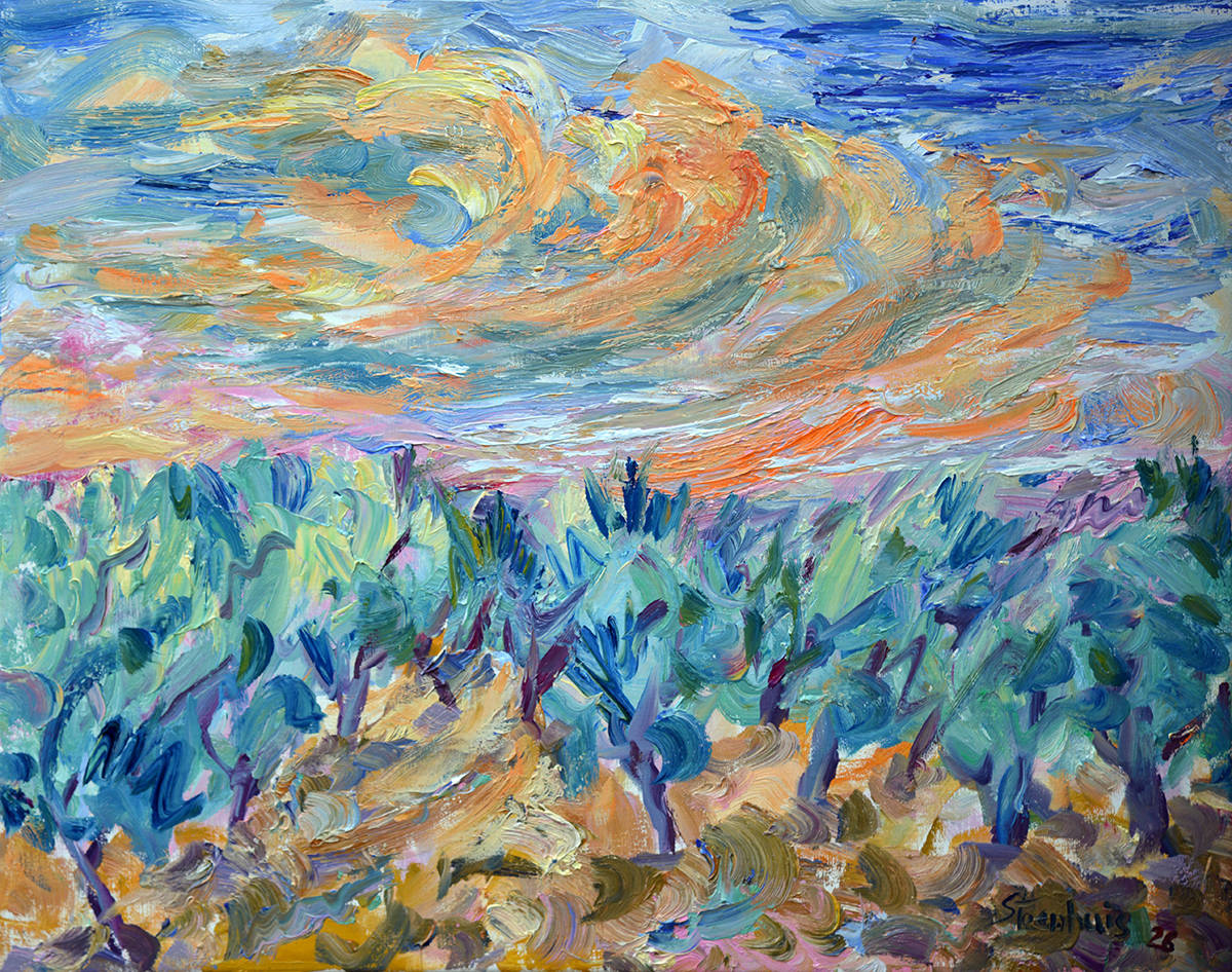 Orange Clouds & Olive Trees Dance in the Wind
