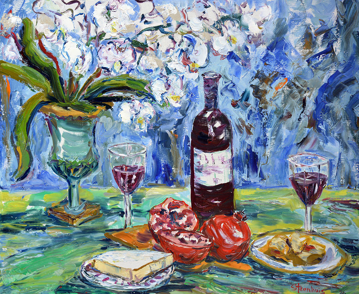 Table Waiting with Wine, Cheese & Pomegranate